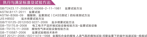 本设备主要于检测金属及其合金、金属覆盖层、有机覆盖层、阳极氧化膜和转化膜的不连续性,如孔隙或其他缺陷。此款盐雾机试验室加热采用热辐射加热方式保持测试空间所需温度,从而保证测试的精度。This equipment is mainly used to detect the discontinuity of metals and their alloys, metal coatings, organic coatings, anodic oxide coatings and conversion coatings, such as pore or other defects. Laboratory heating of this type uses thermal radiation heating to maintain the required temperature of the test space, thus ensuring the accuracy of the test.