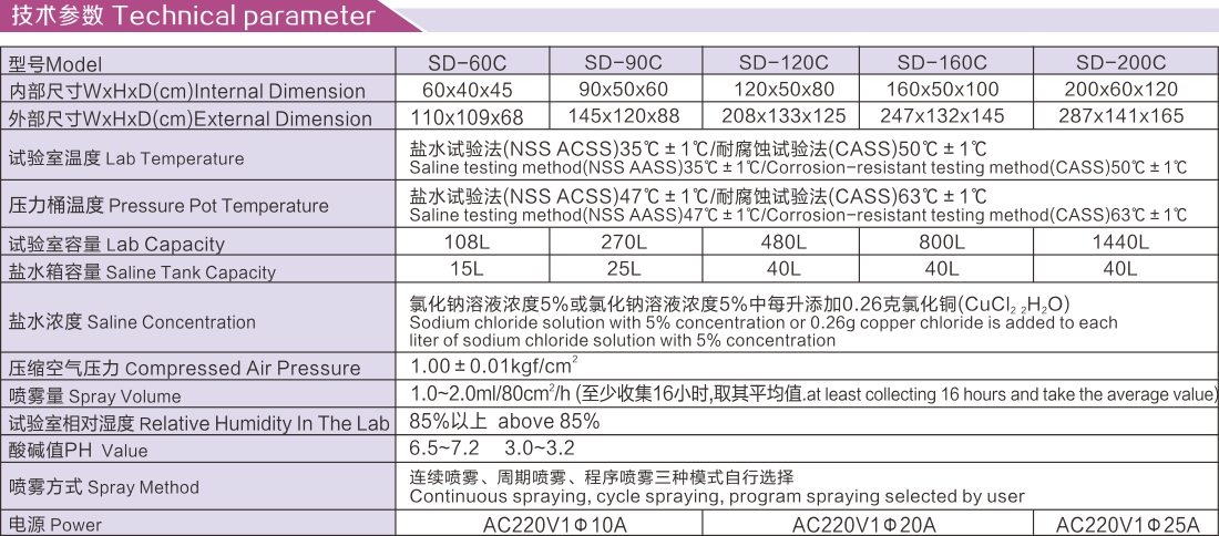 PA视讯盐雾箱C型系列可以完成许多加速腐蚀试验,包括ASTM B117, GB/T2423.17/IEC 60068-2-11, JIS H8502, GB/T10125-2012/ISO 9227-2006, GJB150.11A-2009 , GBT 20121-2006 / ISO11474-1998等试验方法。C型盐雾箱可以连续盐雾试验或间隙喷雾试验,可与电脑连接实现远程操作控制,可记录试验数据及曲线,触摸屏操作界面。Saida salt spray chamber C series can complete many accelerated corrosion tests, including ASTM B117, GB/T 2423.17/IEC 60068-2-11, JIS H8502, GB/T 1125-2012/ISO 9227-2006, GJB150.11A-2009, GBT 20121-2006/ISO 11474-1998 and other test methods. C type salt spray chamber can do continuous salt spray test or interval salt spray test, and can be connected with computer to realize remote operation control. Also can record test data and curves, touch screen operation interface.