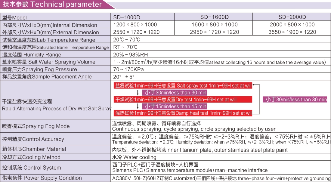 盐干湿试验机主要用于户外盐污染的环境中材料的加速腐蚀试验,本设备是最接近自然状况,以自然环境中较常遇见之状况加以模拟,以数倍于自然环境之苛刻条件加以自合测试,如盐雾、干燥、湿润、常温静置、等环境加以自合,可任意顺序或单独执行测试。